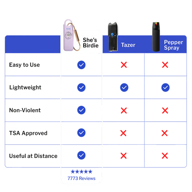 Forget the restrictions of pepper spray and tasers. Birdie is TSA-approved and travel-friendly, so you can take her everywhere you go.